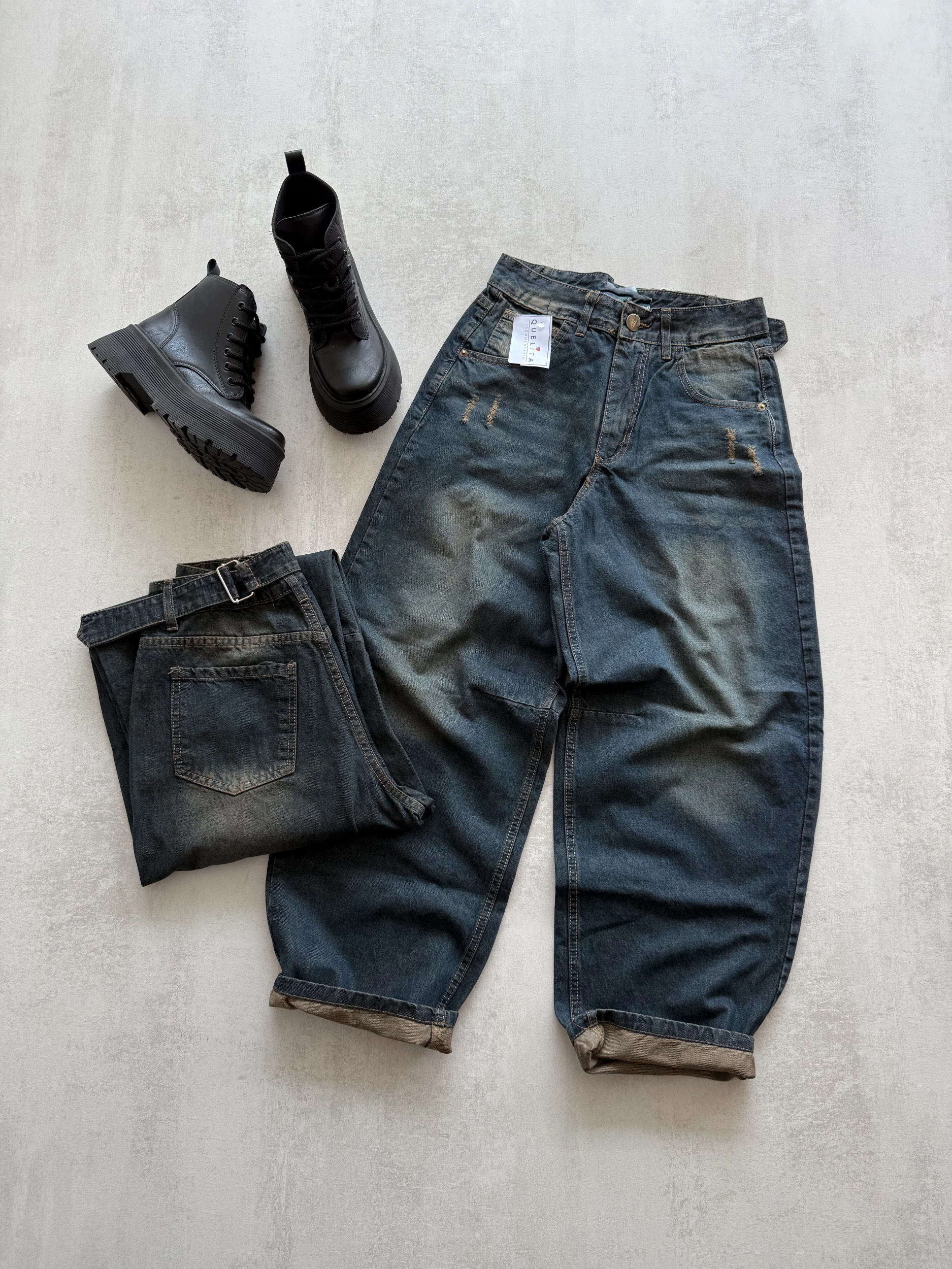 JEAN BAGGY OXIDO OSCURO, RIGIDO, TIRO MEDIO, POR TALLES DEL 36 AL 44, CON REGULADOR DE CINTURA EN PARTE TRASERA