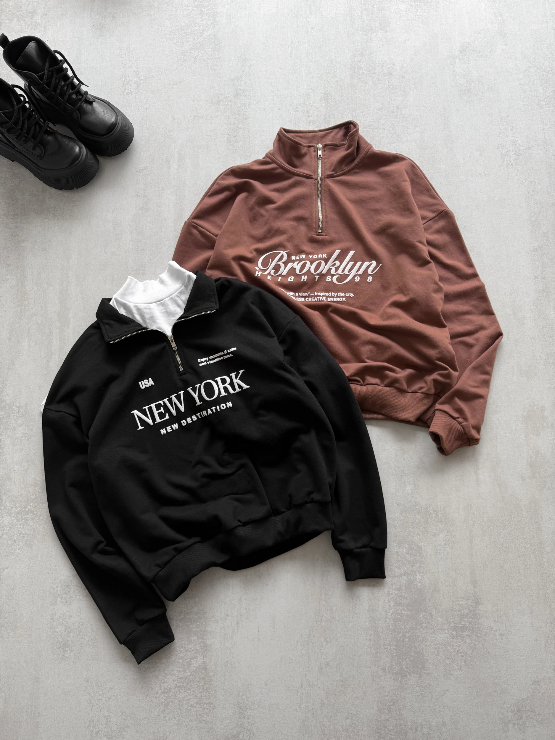 BUZO C/ CIERRE EN EL CUELLO Y ESTAMPA BROOKLYN