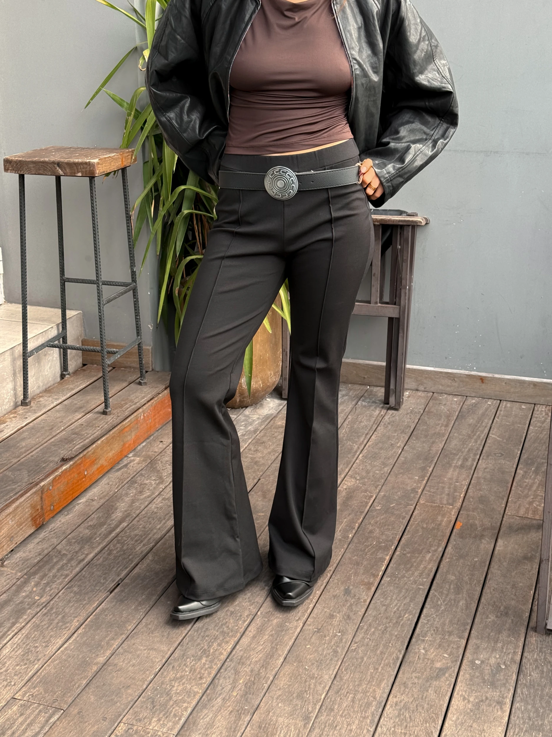CALZA OXFORD ELASTIZADA CON DETALLES DE PINZA EN LAS DOS PIERNAS