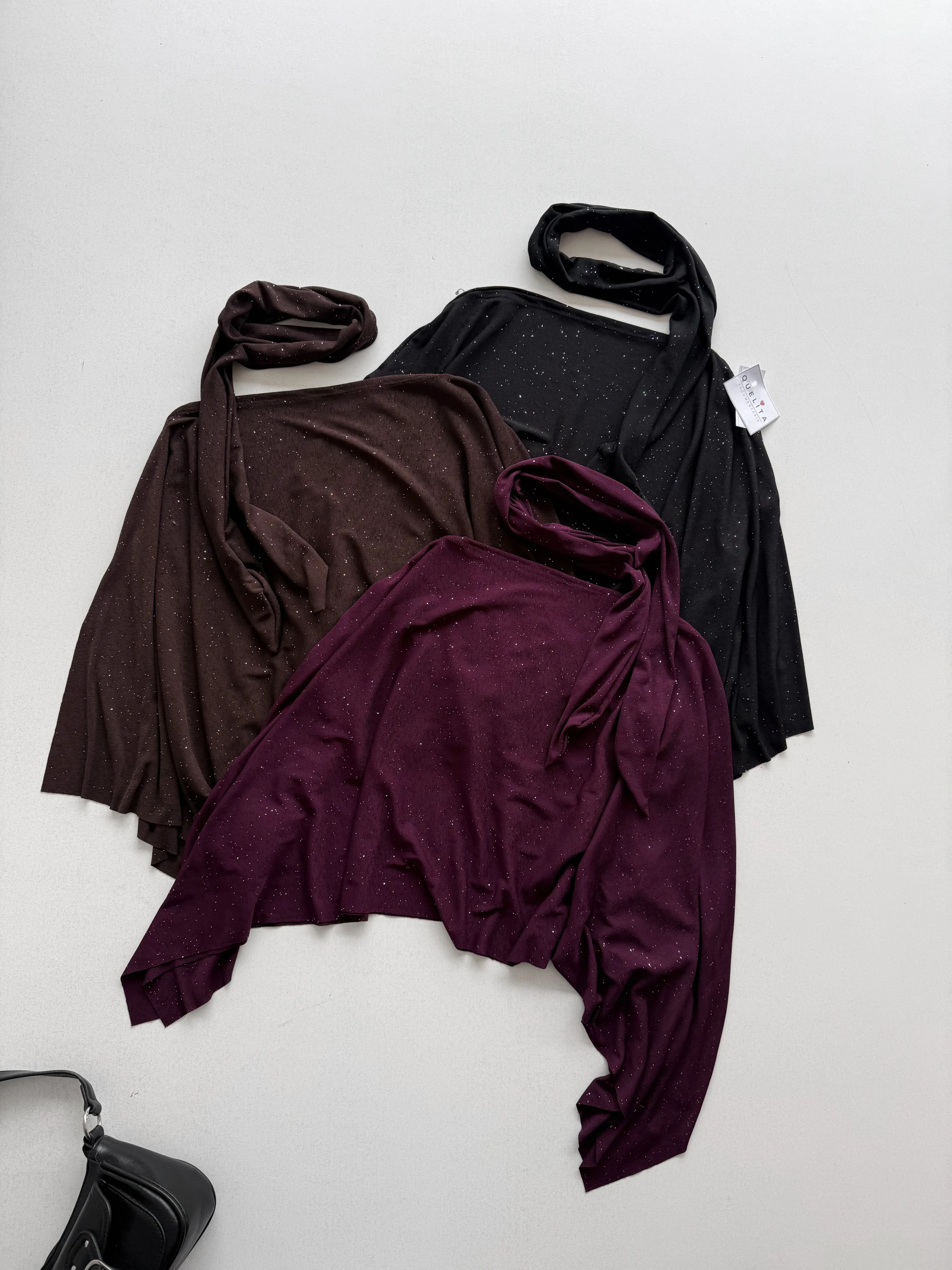 CAPA CON BRILLOS ELASTIZADA, CON LAZO BUFANDA DE ACCESORIO.