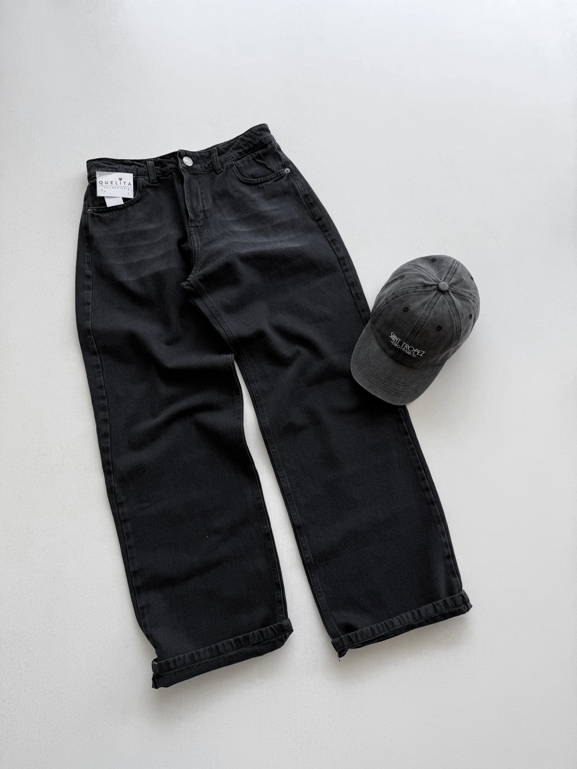 JEAN WIDE LEG, TIRO BAJO, CON DETALLE DE BIGOTES EN PARTE FRONTAL.
