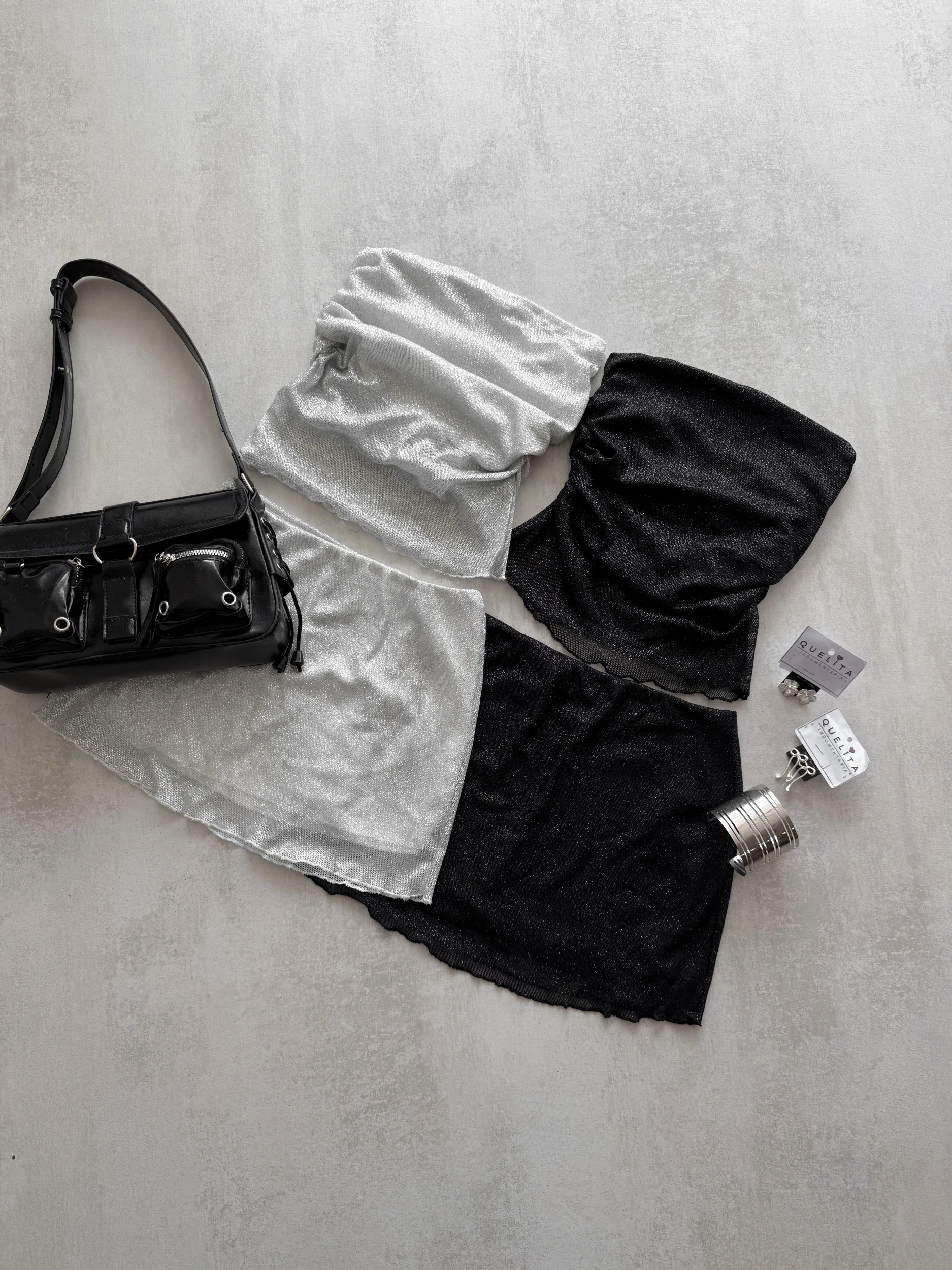 MINI DE ENCAJE CON GLITTER, DOBLE TELA DE MICROFIBRA PARA EVITAR TRANSPARENCIAS. TALLE UNICO.